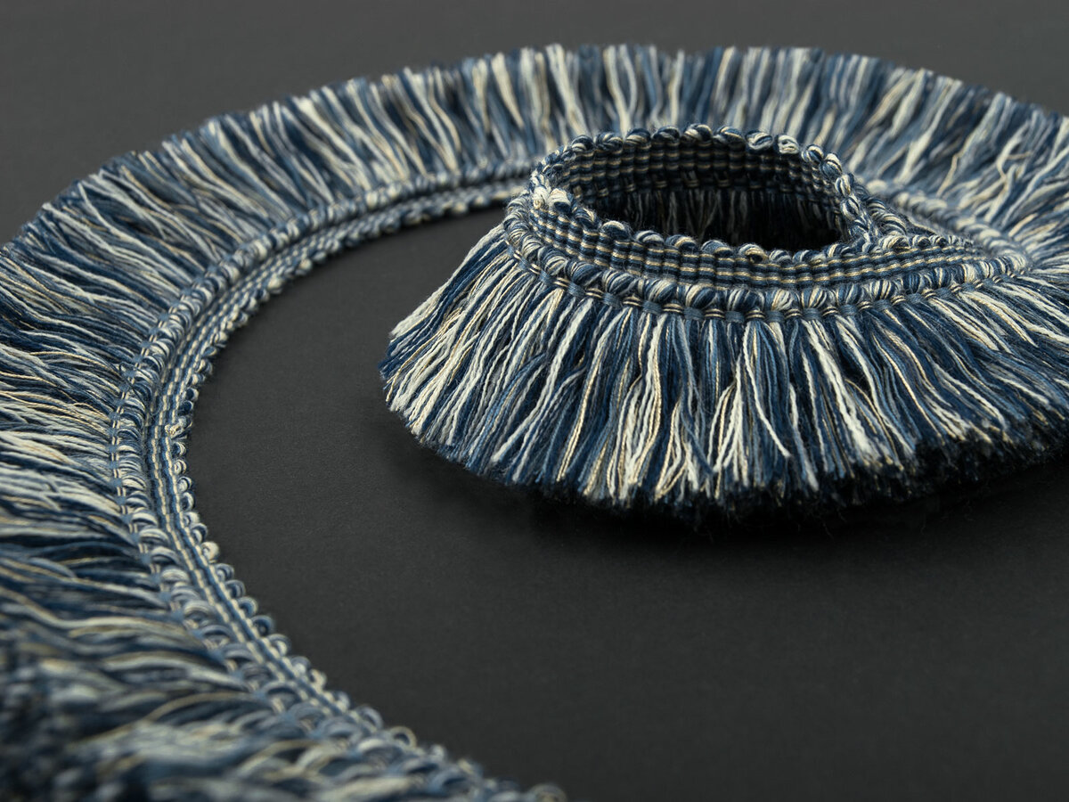 This moss fringe is thick and lush, it blossoms beautifully when applied. This full bloomed fringe is multi-coloured and pulls together the colour scheme of the room. The macarame can either be sewn into seam or remain atop the fabric. Applications: Upholstery, furniture skirts and edging, window treatments, draperies, table runners, banding on pillows, throws, headboards and lamp shades, bedding.