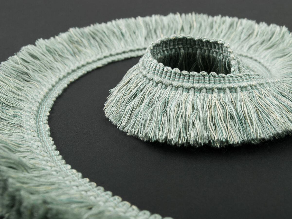 This moss fringe is thick and lush, it blossoms beautifully when applied. This full bloomed fringe is multi-coloured and pulls together the colour scheme of the room. The macarame can either be sewn into seam or remain atop the fabric. Applications: Upholstery, furniture skirts and edging, window treatments, draperies, table runners, banding on pillows, throws, headboards and lamp shades, bedding.