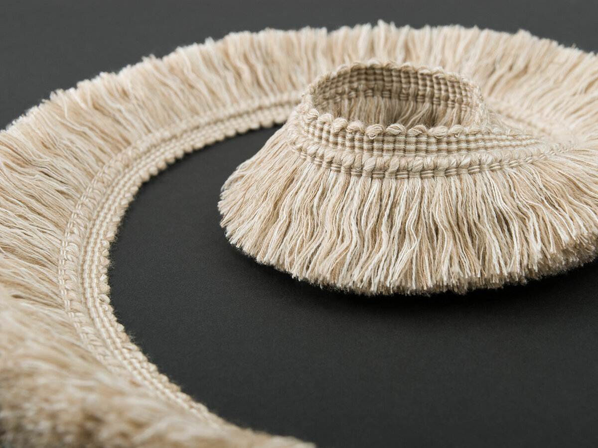 This moss fringe is thick and lush, it blossoms beautifully when applied. This full bloomed fringe is multi-coloured and pulls together the colour scheme of the room. The macarame can either be sewn into seam or remain atop the fabric. Applications: Upholstery, furniture skirts and edging, window treatments, draperies, table runners, banding on pillows, throws, headboards and lamp shades, bedding.