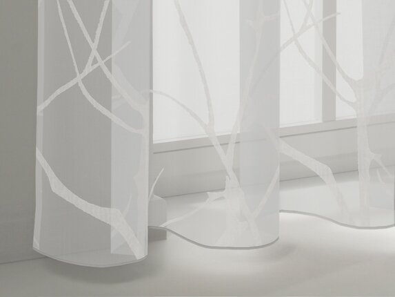 CANDICE is a prime example of how the art of printing can be combined with a timeless design. Inspired by nature, minimalistic bare branches embellish the delicate voile burn out fabric. An additional print effect on the branch structure accentuates the motif’s vibrancy. Its structured base fabric rounds off CANDICE’s profile, as it is low-maintenance when it comes to washing and ironing.