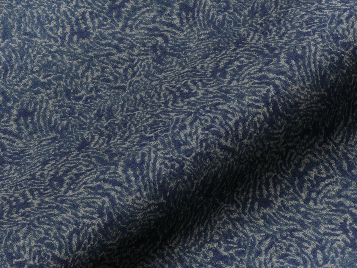 CARRAWAY – exceptionally beautiful and inspired by nature. It is voluminous in both its look and feel. And the noble creations made from Chenille appear effectively three-dimensional in non-colours, olive and gentian blue.
