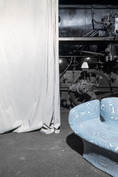 This decorative upholstery fabric unfolds its character in a delicate balance of movement and calm. The marbled jacquard weave features a tone-on-tone pattern whose lines glide across the surface like flowing water. The interplay of voluminous bouclé yarn and a matte satin base creates a subtle relief structure that gently shapes the woven surface. Fine contour lines accentuate the moiré-like texture of the motif, bringing the visual relief clearly to life.