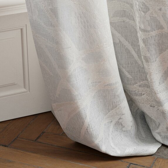 The generously scaled Scherli design unfurls in gentle movement across the transparent ground — a weave of leaves, branches, and grape-like blossoms that reveal their full allure in backlight. The refined balance between dense and translucent areas creates a delicate interplay of light and shadow, lending the room a poetic atmosphere. Subtly metallic accents within the blossoms add shimmering highlights and give the design a modern, luxurious touch. A decorative fabric that artfully blurs the line between indoors and outdoors, between natural beauty and refined elegance.