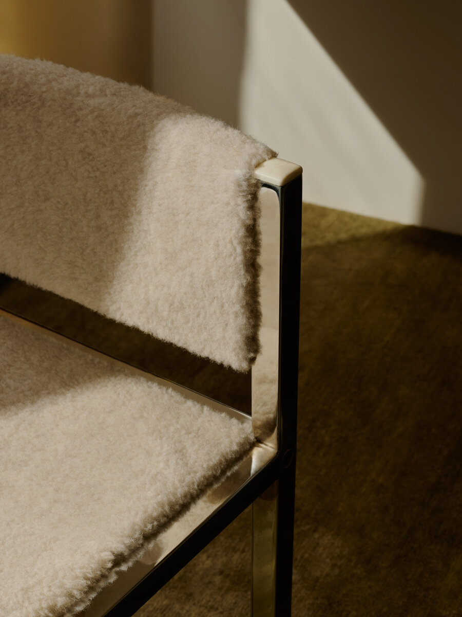 This high-pile wool fabric evokes the feeling of a warm, sheltered retreat — a place of natural comfort, authenticity, and quiet luxury. Its surface, reminiscent of lambskin, is crafted from pure new wool and gains its soft, fur-like depth through traditional finishing techniques such as milling and brushing.