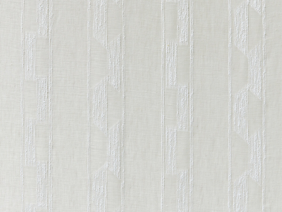 Light as air, CHEMIN BLANC is characterised by the transparency and emblematic look of ETAMINE Paris sheers. Woven in wide widths of linen and cotton, a thrown and cut yarn draws structured stripes giving this linen sheer a timeless elegance. An "Aero" finish brings softness and comfort.