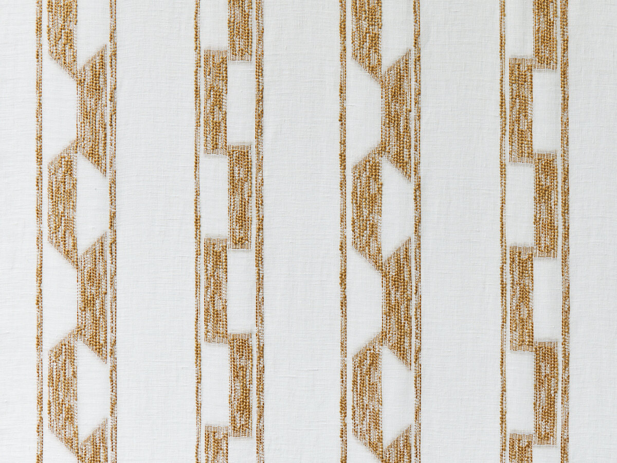 Light as air, CHEMIN BLANC is characterised by the transparency and emblematic look of ETAMINE Paris sheers. Woven in wide widths of linen and cotton, a thrown and cut yarn draws structured stripes giving this linen sheer a timeless elegance. An "Aero" finish brings softness and comfort.