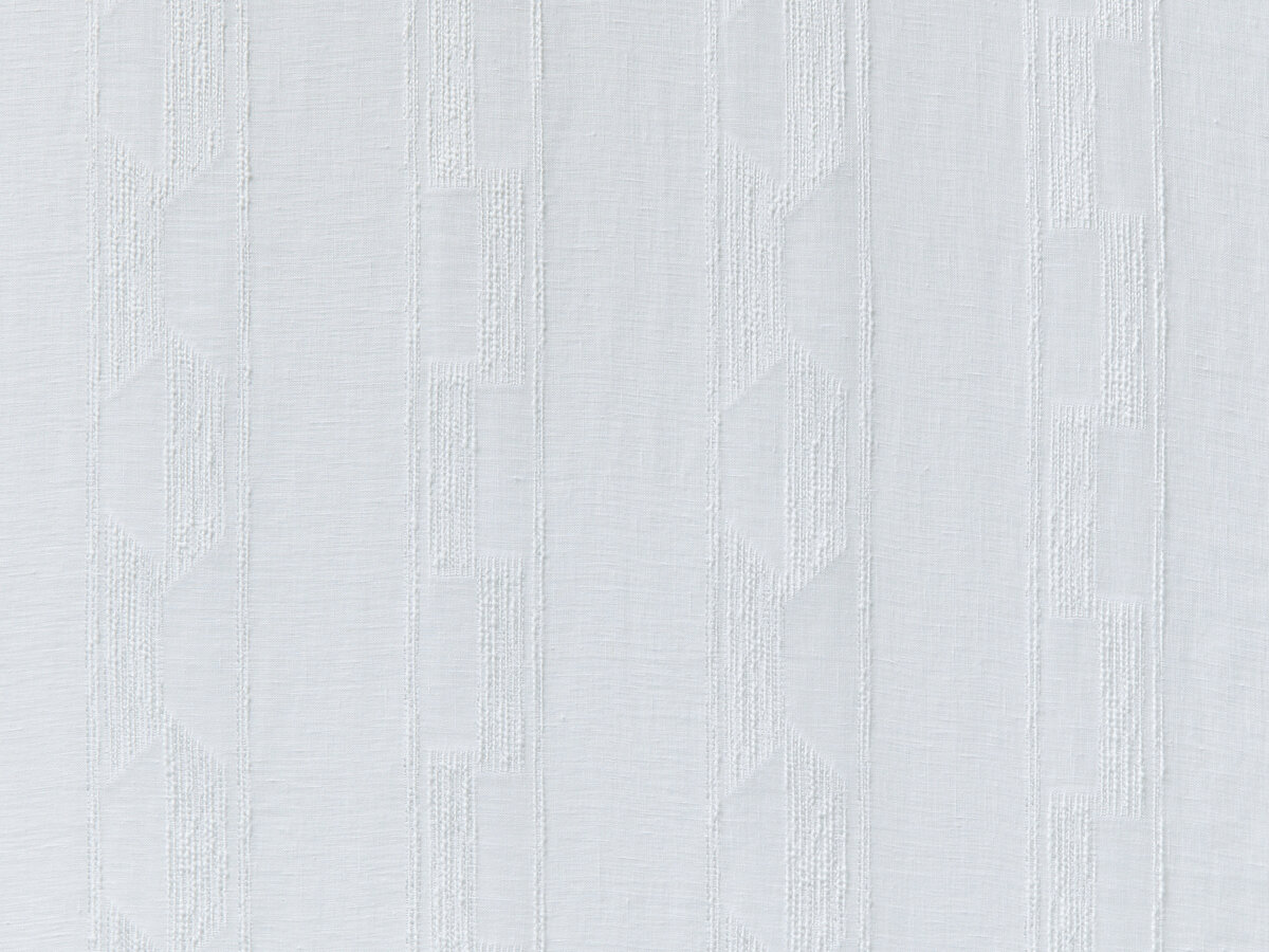 Light as air, CHEMIN BLANC is characterised by the transparency and emblematic look of ETAMINE Paris sheers. Woven in wide widths of linen and cotton, a thrown and cut yarn draws structured stripes giving this linen sheer a timeless elegance. An "Aero" finish brings softness and comfort.