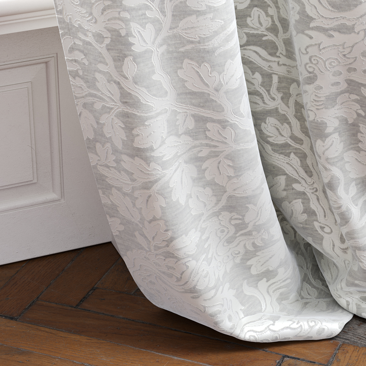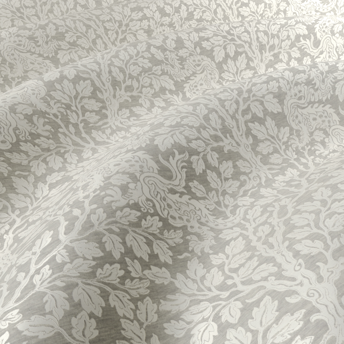 The dragon is a symbol for luck, peace and long life in Asian culture – and the creative impulse for the design of CHENGLEI DRAGON, a two-colored satin weave with an Asian-inspired allover dragon design. Woven on a very fine silk-like warp as an elaborate Jacquard, the auspicious mythical creatures cavort through a dense background of leaf work. After weaving, the fabric is finished with a gentle brush, giving it a modern, softly flowing character and a wonderfully soft feel.