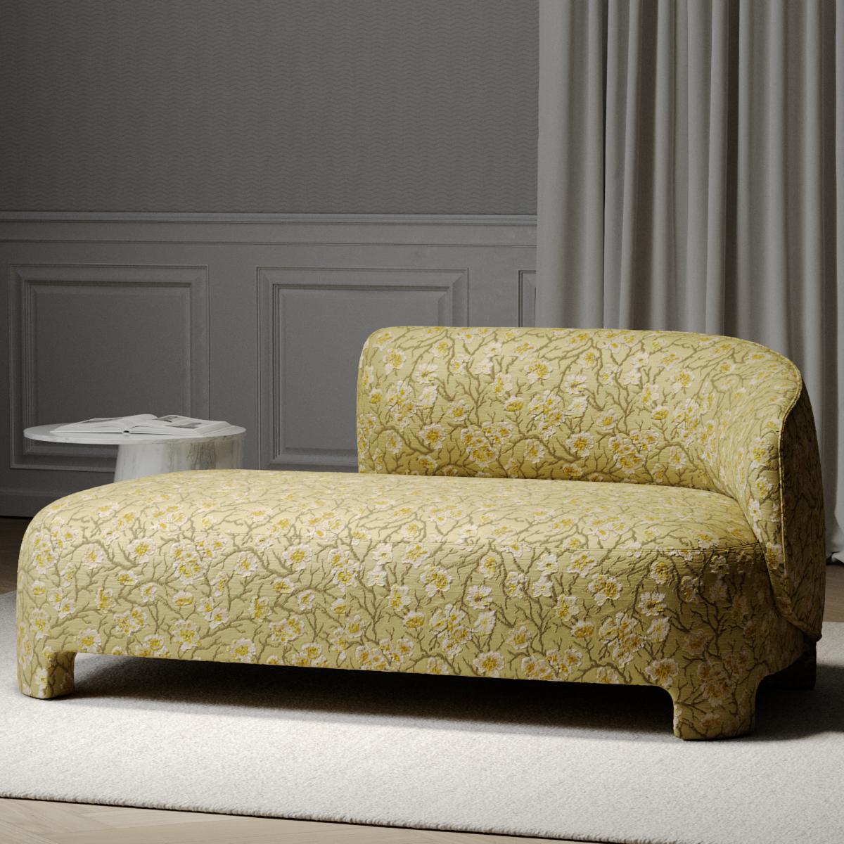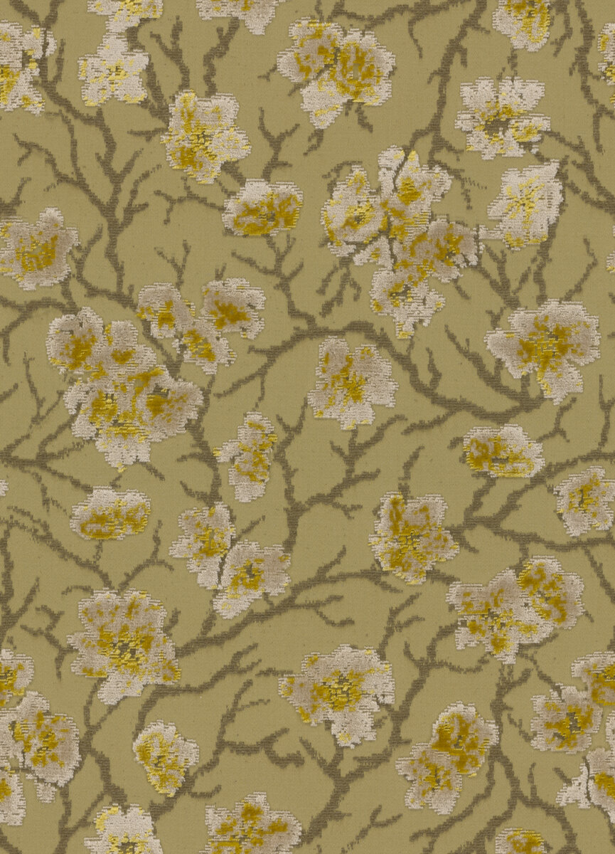 Like an endless carpet of blossoms, this playful design unfolds across the surface of a meticulously crafted jacquard velour, drawing inspiration from the delicate beauty of cherry trees in full spring bloom. Rendered in finely nuanced tones, the lush floral shapes rise from the velvety pile, creating a striking sense of depth against the subtle matte sheen of the cotton satin base.
