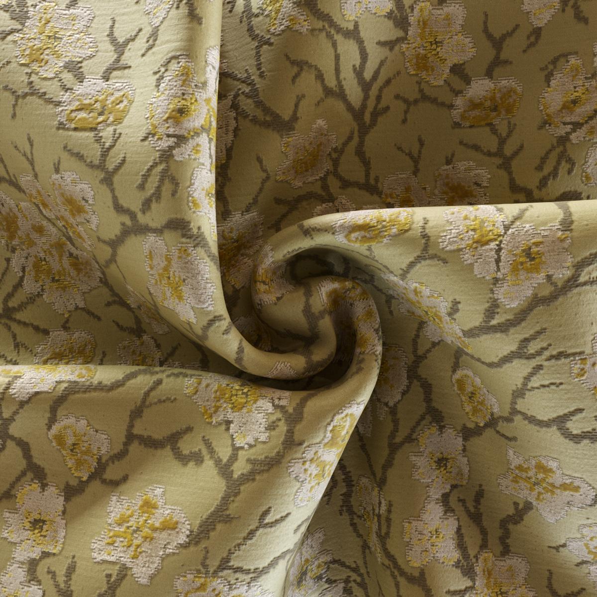 Exquisite épinglé technique refines the motif with delicate outlines, giving the blossoms an almost three-dimensional presence, as if nature itself had been pressed directly onto the fabric. A fine network of branches, woven from softly textured bouclé yarn, weaves a quiet dialogue of matte and gloss with the smooth satin ground.