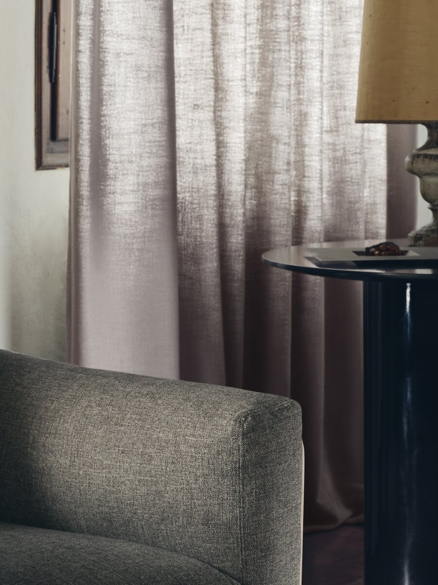 The translucent décor fabric ensures privacy while still allowing light into the room. The flammé structure can be admired particularly in counter light, providing a cozy atmosphere. The softly falling fabric begs to be generously and casually draped in a window treatment and emphasizes this easy-care fabric's modern and uncomplicated character.