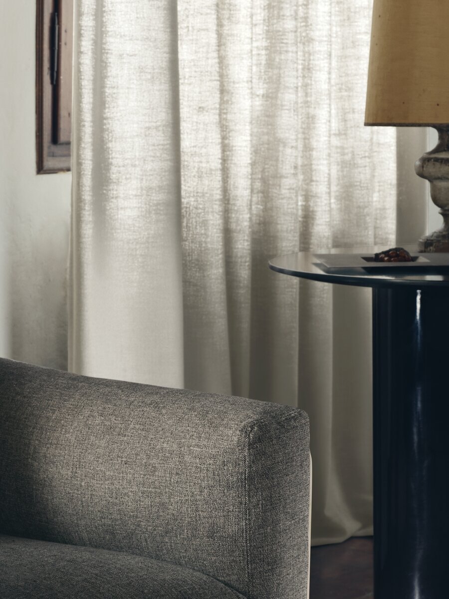 The translucent décor fabric ensures privacy while still allowing light into the room. The flammé structure can be admired particularly in counter light, providing a cozy atmosphere. The softly falling fabric begs to be generously and casually draped in a window treatment and emphasizes this easy-care fabric's modern and uncomplicated character.