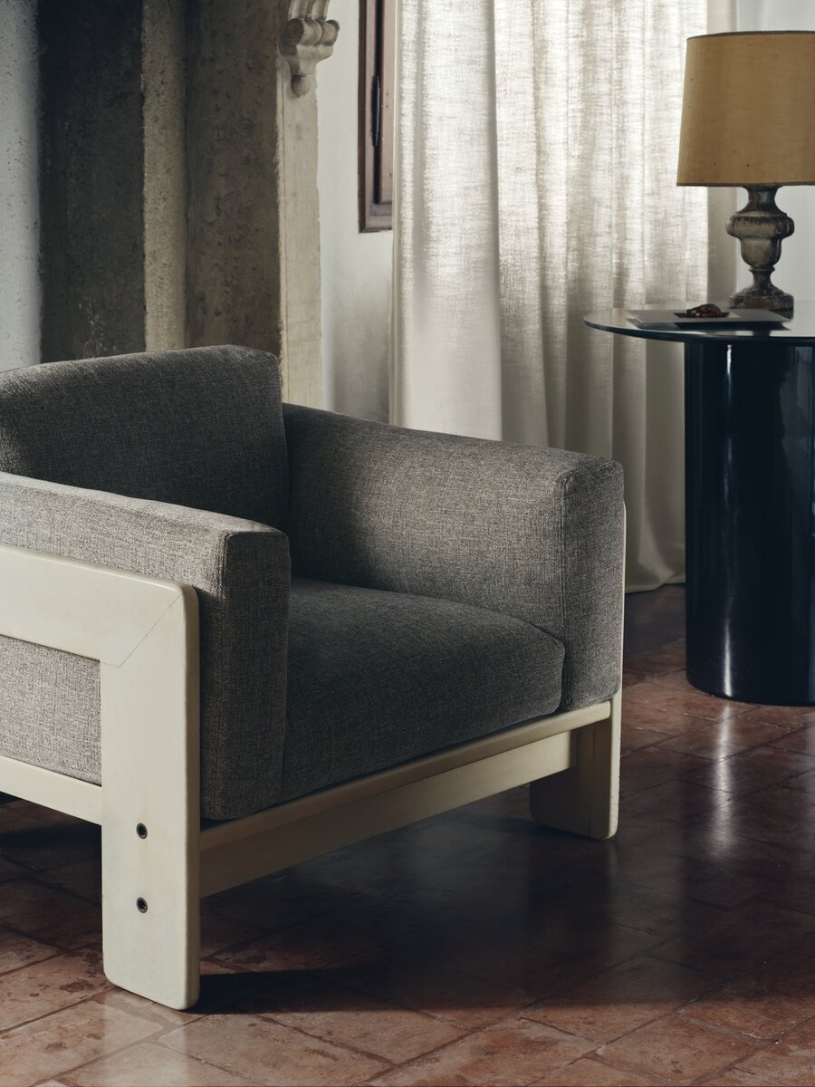 The highlight of this floor-to-ceiling Inbetween fabric is its clear color combined with the expressive texture of the woven yarns.