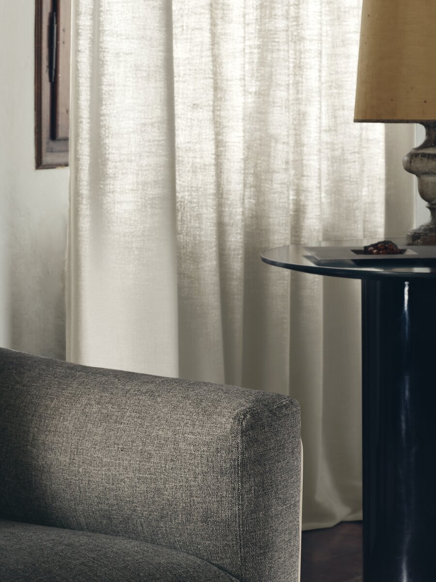 The translucent décor fabric ensures privacy while still allowing light into the room. The flammé structure can be admired particularly in counter light, providing a cozy atmosphere. The softly falling fabric begs to be generously and casually draped in a window treatment and emphasizes this easy-care fabric's modern and uncomplicated character.