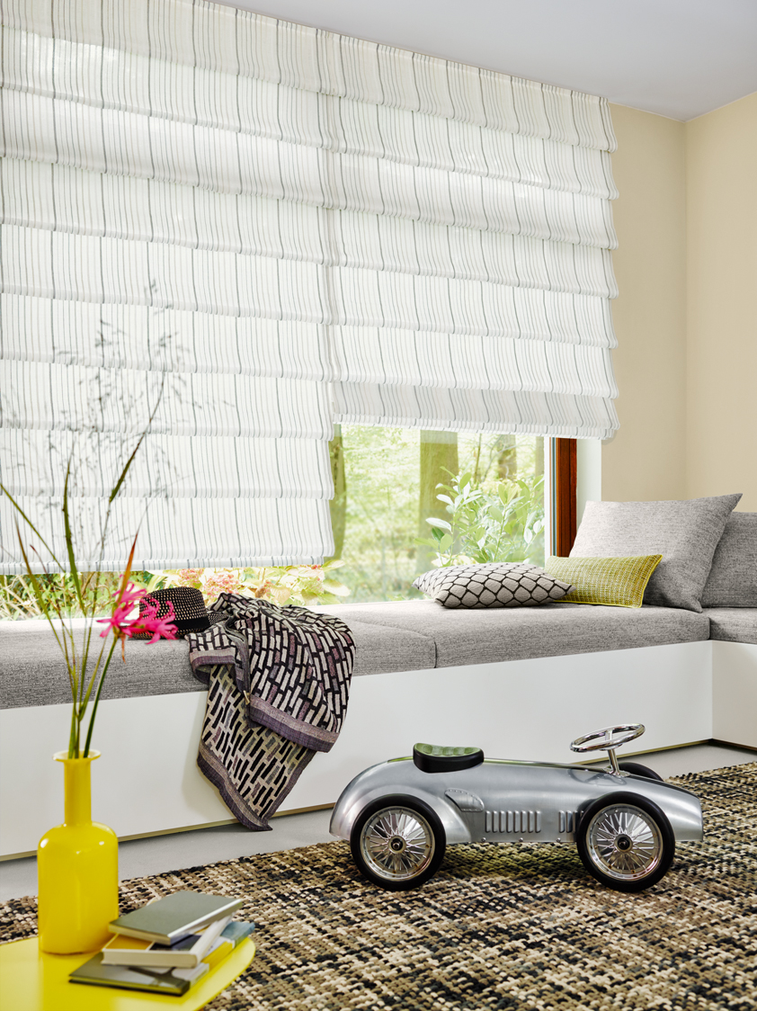 This lively pattern of stripes with differing weights shimmers slightly as it spreads across a background fabric that contains cotton, which makes it naturally dry to the touch. Available in five colour variations, ranging from subtle and natural to playful and vibrant.