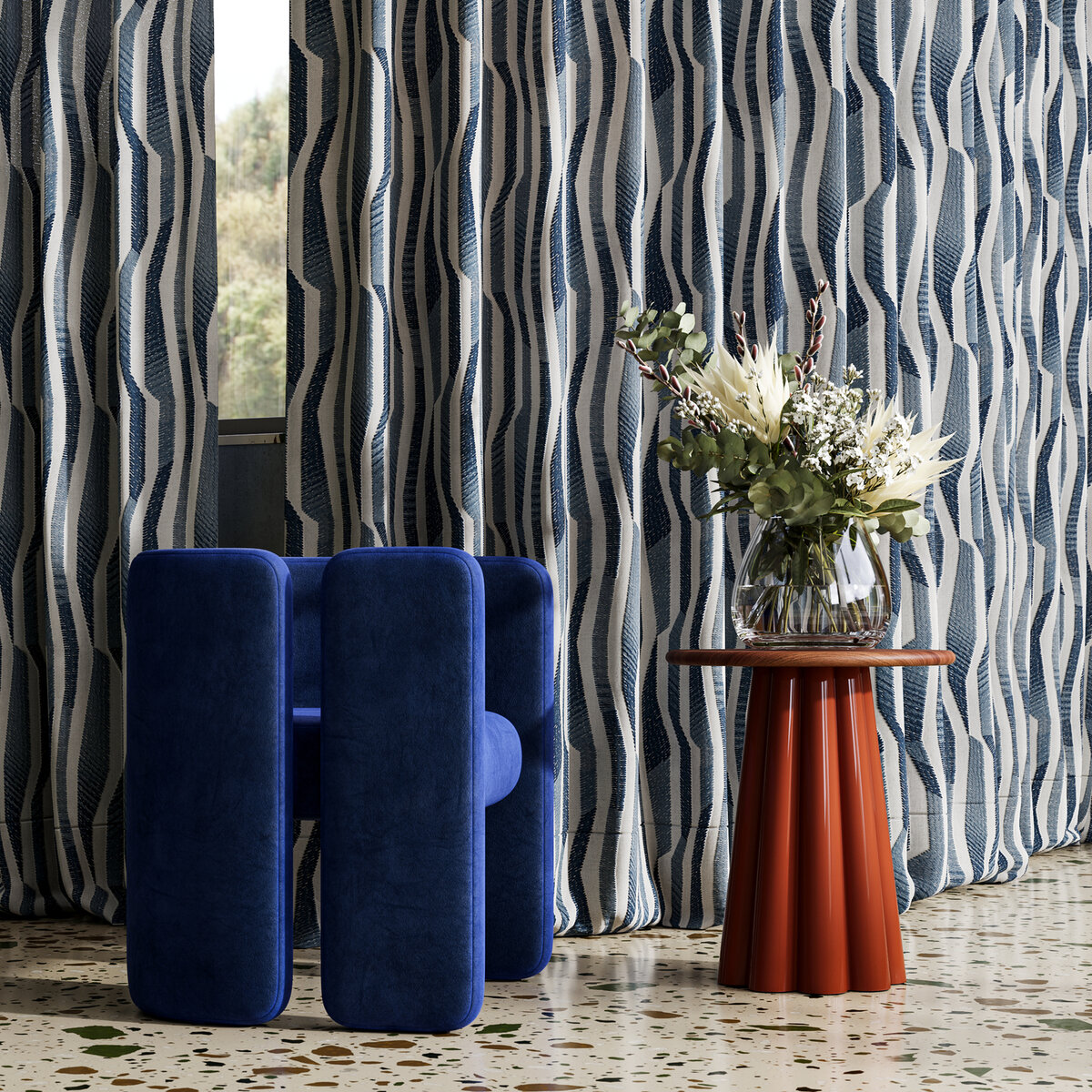 COLUMN is like a modern work of art, elegantly framed by a window. The contemporary embroidery against the authentic herringbone background makes each linear meter unique. The dense, voluminous blend of cotton, linen, polyester, and viscose exudes a constant, laid-back feeling. A key feature is the unique color gradient that gives COLUMN its sculptural appearance. A must-have in mustard, this fabric is equally stunning in azure blue or charcoal.