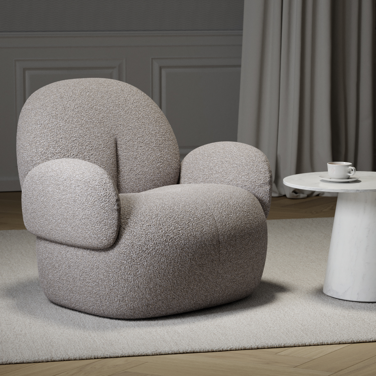 Noticeably soft and voluminous. For this expressive color mélange, boucle yarns in three different color nuances are brought together in warp and weft. The result is a high-comfort upholstery fabric with a dense woolen texture. Feel COMFY BOUCLÉ.