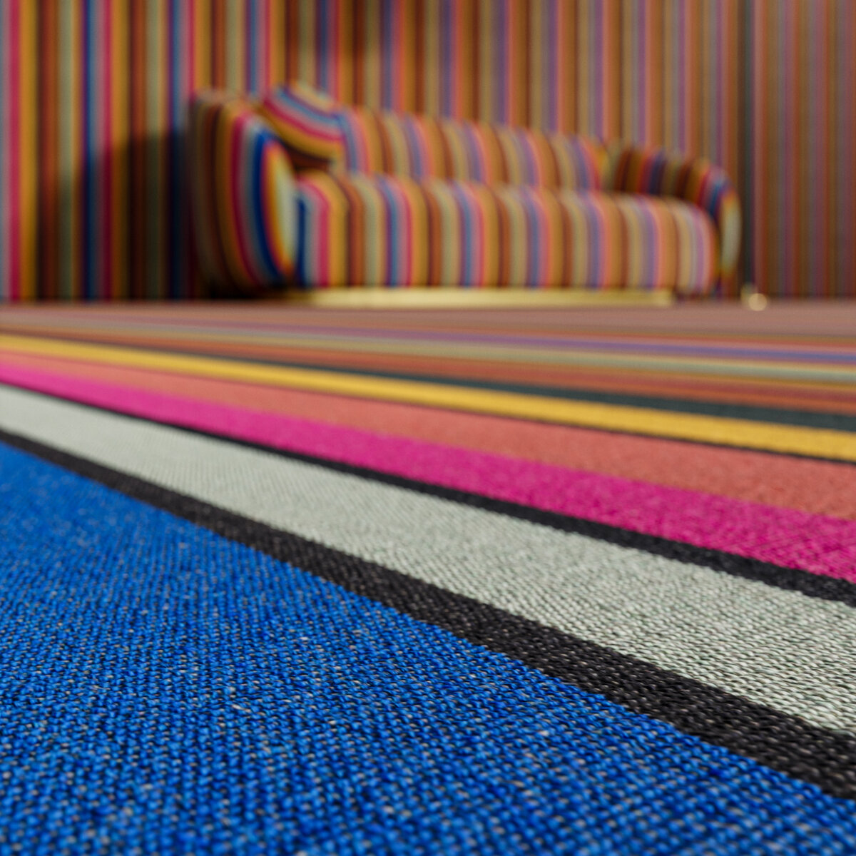 Summer vibes with COTTON STRIPE. You’ll be able to enjoy the most beautiful sunsets directly in your four walls with the striking tones of this lively multicolored striped fabric. By the way, COTTON STRIPE is also perfect when paired with the colorways of the plain-weave COTTON CLUB fabric. Make your favorite match.