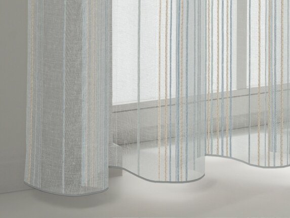 Rustic, natural and handCRAFTed. The fabric is liberally filled with narrow and wide stripes, harmonising perfectly with the transparent, linen-like base fabric. Available in neutral and balanced colour combinations. Floated threads enhance the fabric’s handmade characteristics and its appeal. This fabric makes a big impression.