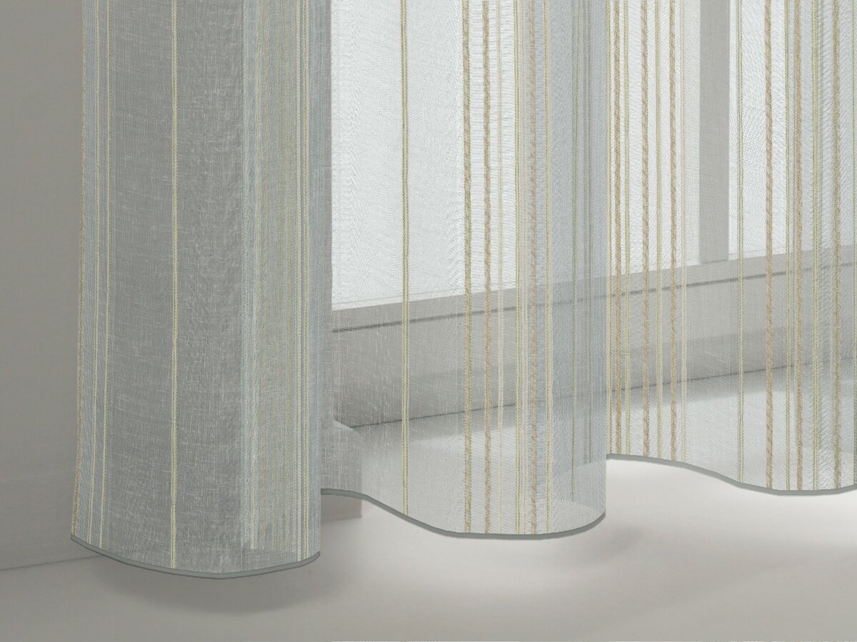 Rustic, natural and handCRAFTed. The fabric is liberally filled with narrow and wide stripes, harmonising perfectly with the transparent, linen-like base fabric. Available in neutral and balanced colour combinations. Floated threads enhance the fabric’s handmade characteristics and its appeal. This fabric makes a big impression.