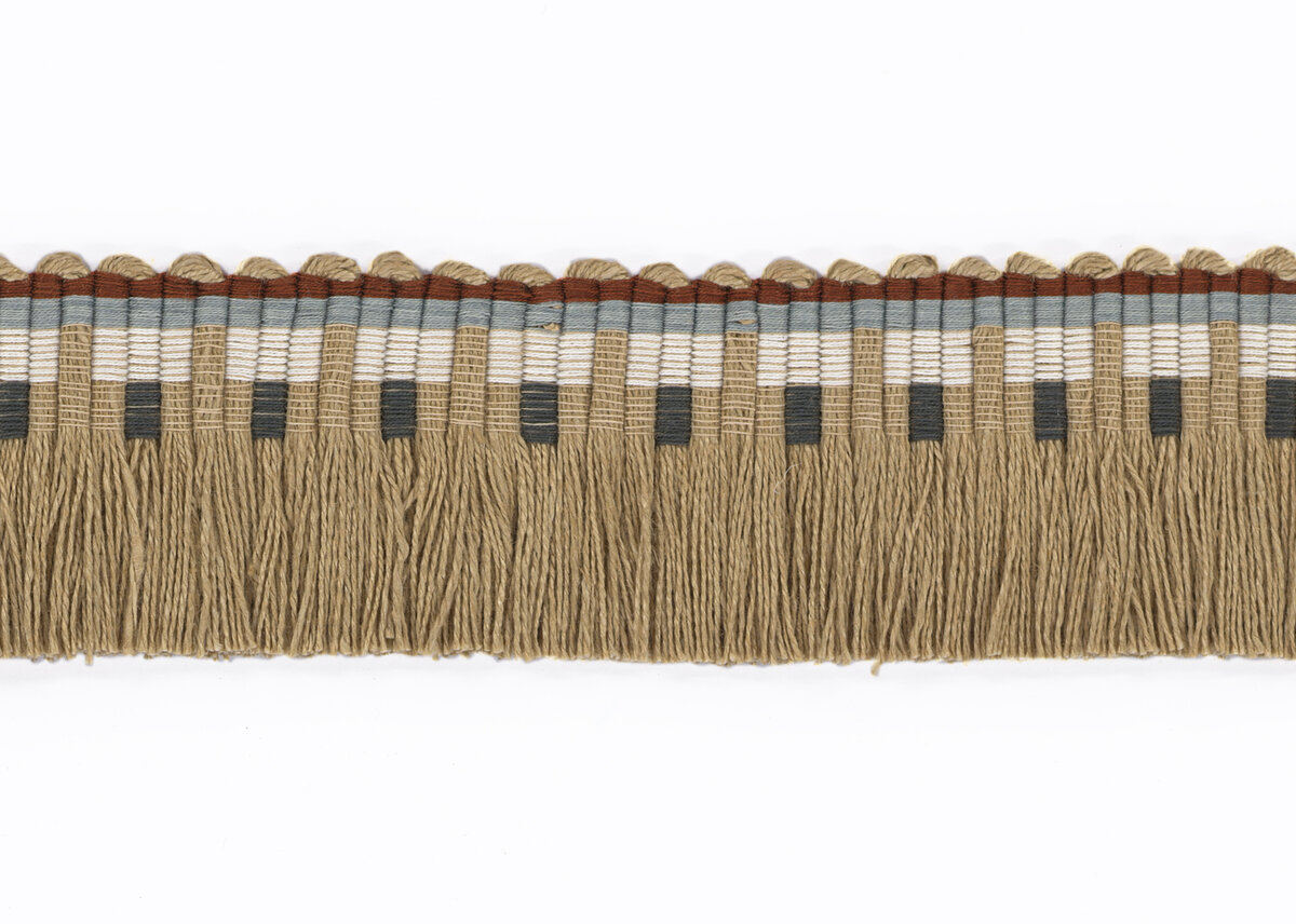 Carefully crafted, the Cuba Brush Fringe is set apart by its intricately bound header. Inspired by the thatch rooves found on Cuban beach huts, ripples of colour wind between lengths of lively jute-look fringe; a true celebration of artisanal weaving techniques.