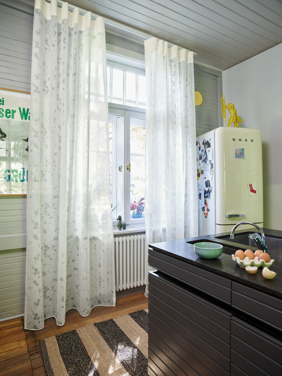 DAISY makes quite the entrance thanks to its extravagant Scherli contours. Its floral allover design reveals the full extent of its beauty and impact when backlit on a window. Transparency and opaqueness, a jacquard-patterned background and decorative fringes form a harmonious unit. Despite all the design’s largesse, the repeat is only 38 cm and is therefore perfect for smaller windows.