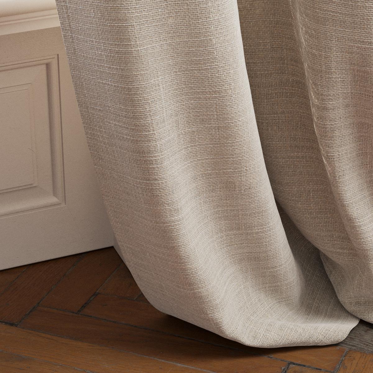 This floor-to-ceiling decorative fabric, with its pleasing texture and exceptionally soft drape, is perfect for modern, casual decor. The opaque fabric features a subtle structure, allowing it to be draped loosely and effortlessly. Its soft color palette is primarily composed of natural and pastel tones, adding a gentle touch to any space.