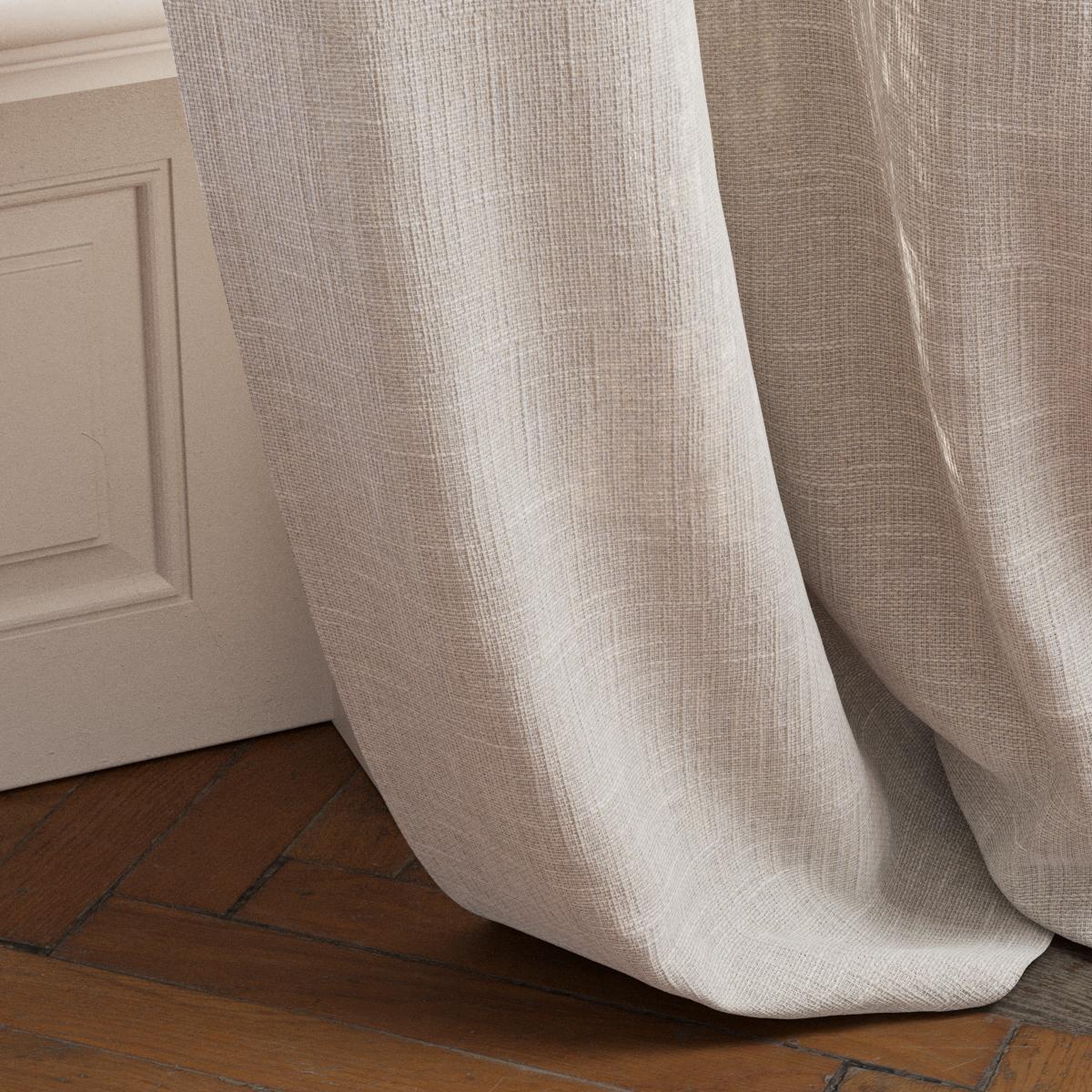 This floor-to-ceiling decorative fabric, with its pleasing texture and exceptionally soft drape, is perfect for modern, casual decor. The opaque fabric features a subtle structure, allowing it to be draped loosely and effortlessly. Its soft color palette is primarily composed of natural and pastel tones, adding a gentle touch to any space.
