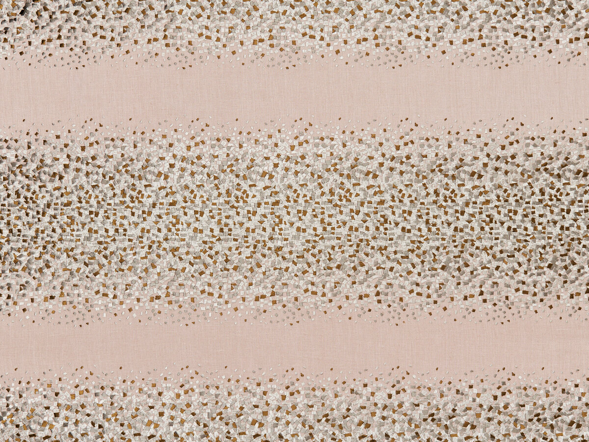 This is an expressive and stylish striped barré fabric on an opulent linen-satin blend. The different embroidery elements shimmer in a subtle shift of colour and create a delightful combination together with the matte linen background. They evoke imagery of small precious gemstones and lend DIAMANTI its refined beauty.