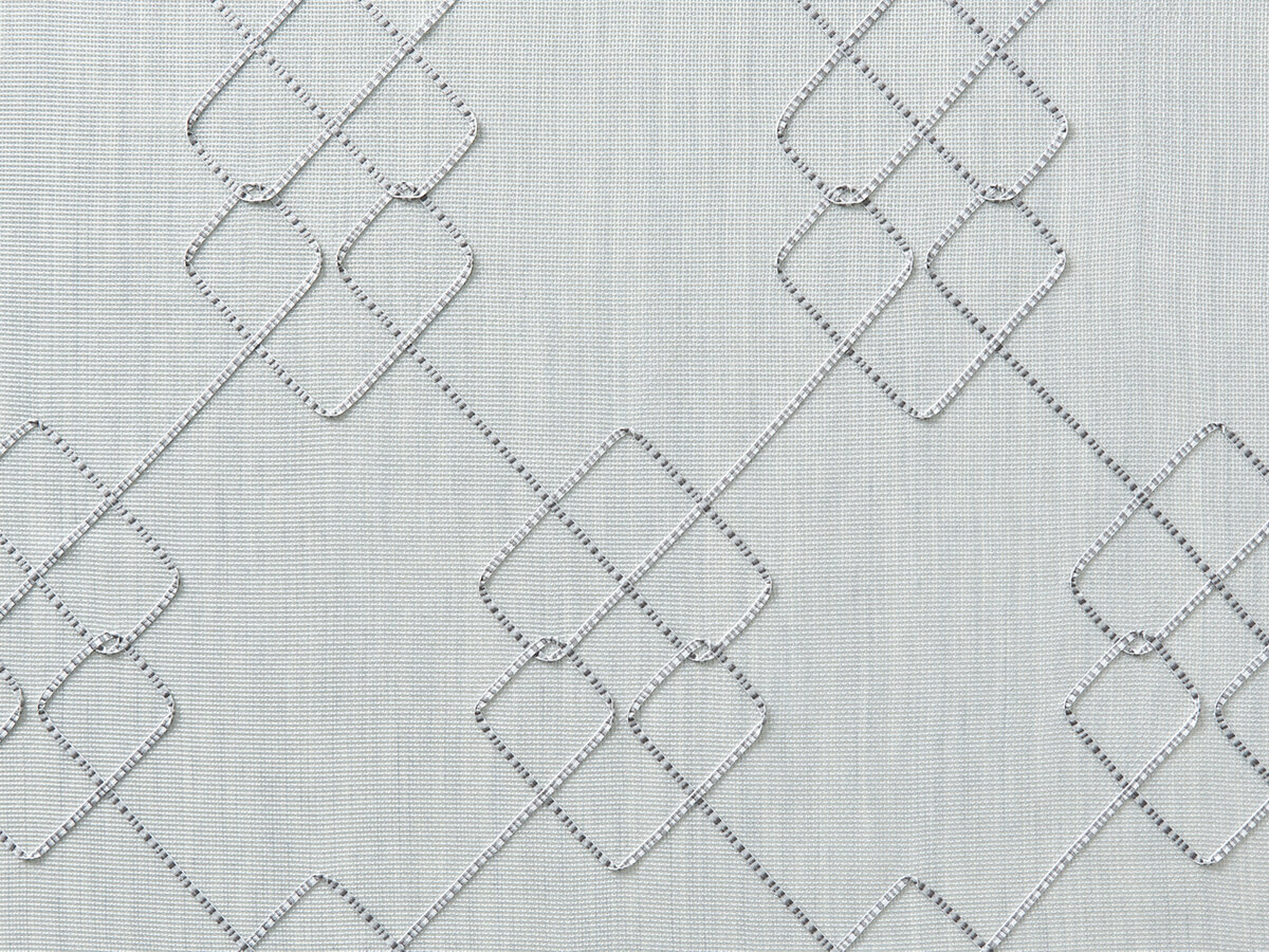 DIETRICH is a distinctive, wide width, transparent fabric with a refined feel. Small, subtle, two-tone woven strips have been embroidered into the mesh fabric in the shape of diamonds using an innovative appliqué technique, lending this low-maintenance textile its charming character.