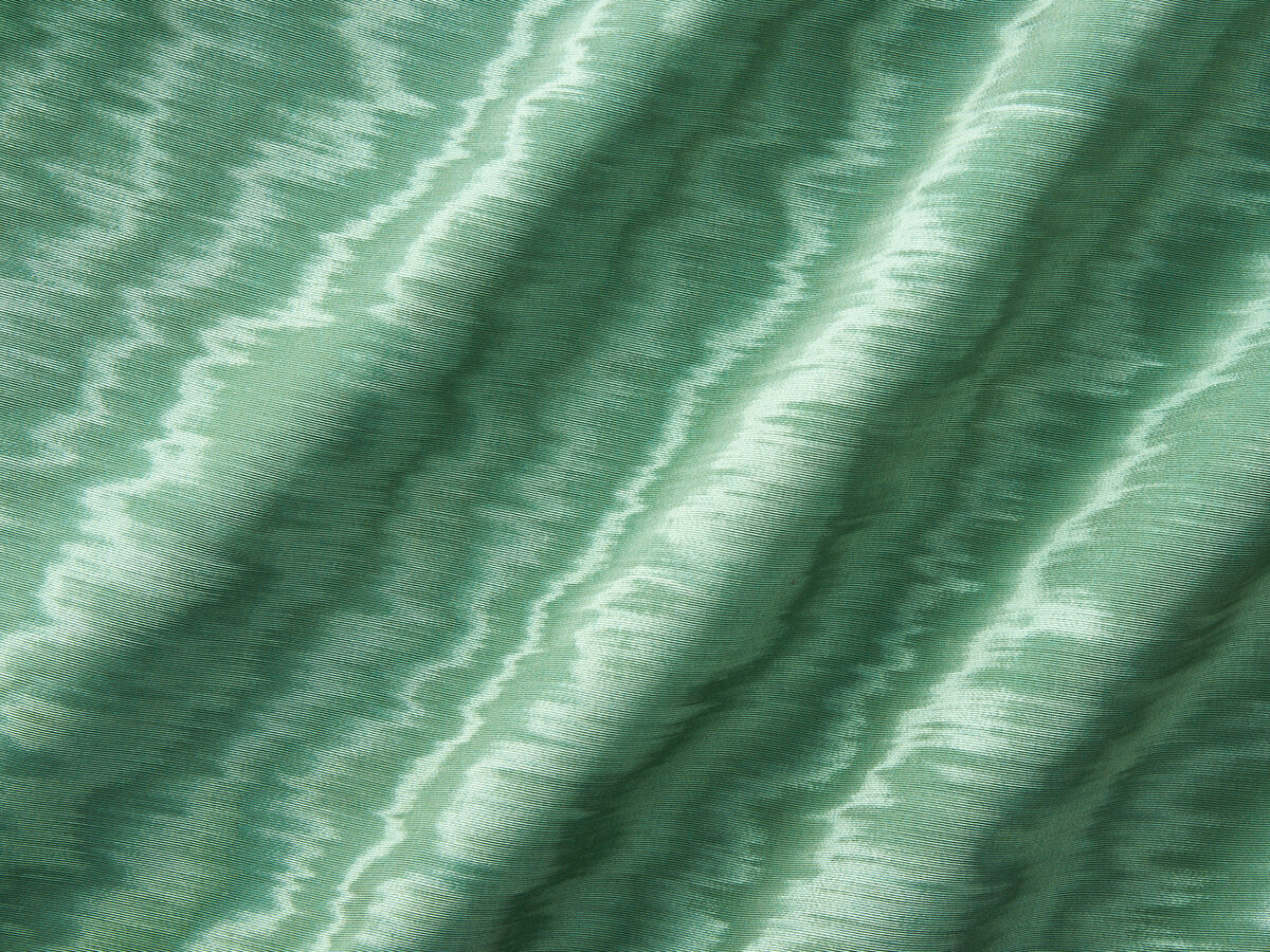 The sumptuous quality of this moiré is underlined by the handcrafted touch and the complex creation process, resulting in a finely drawn, organic design.