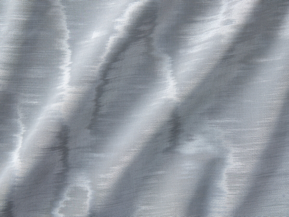 The sumptuous quality of this moiré is underlined by the handcrafted touch and the complex creation process, resulting in a finely drawn, organic design.