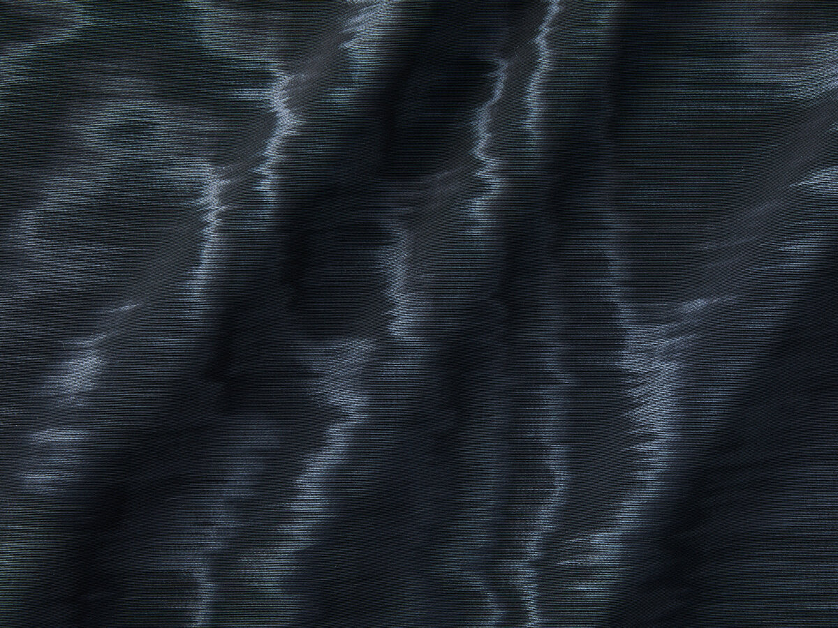 The sumptuous quality of this moiré is underlined by the handcrafted touch and the complex creation process, resulting in a finely drawn, organic design.
