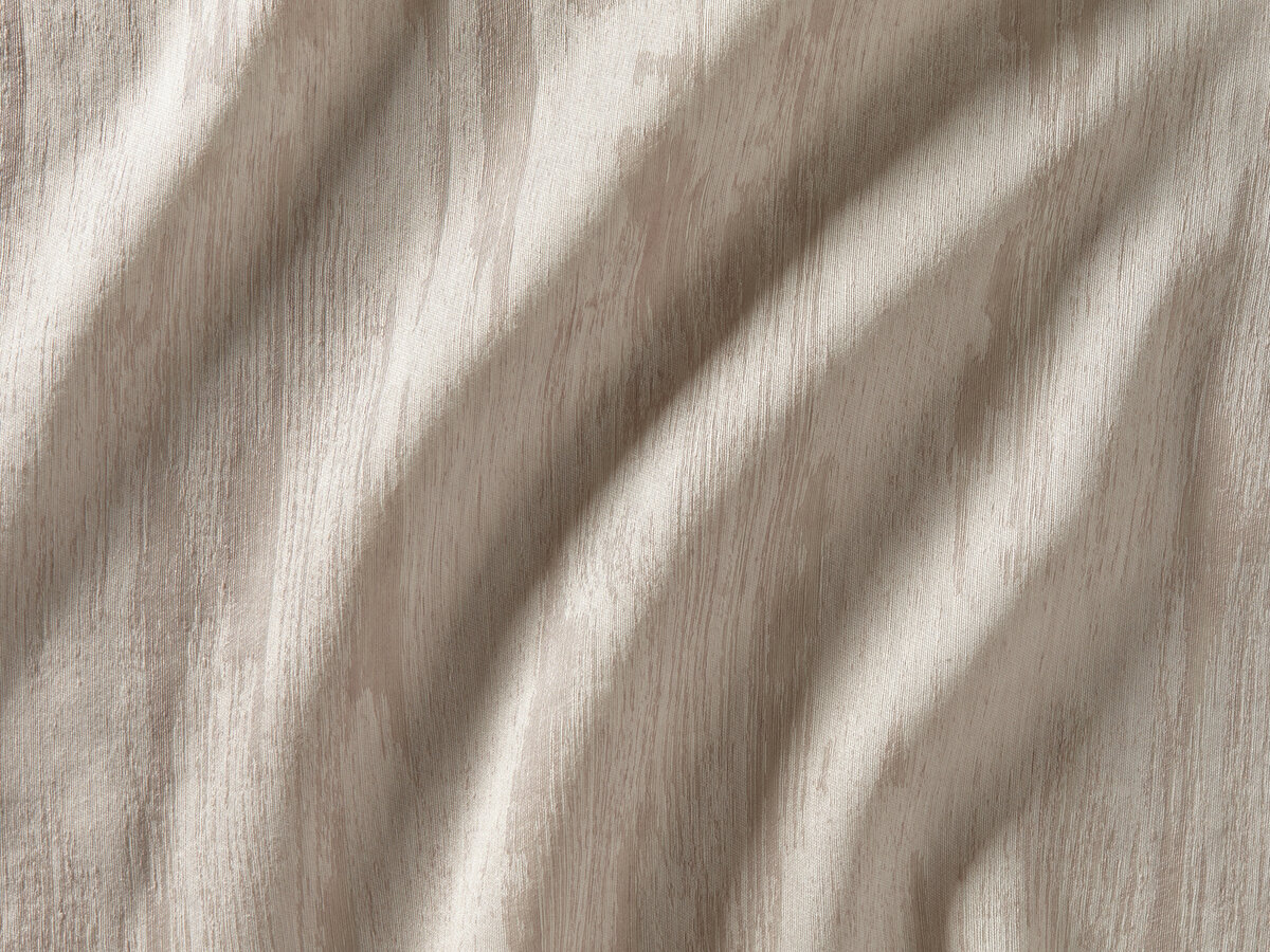 The charm of this light and high-quality linen fabric, which is almost monochrome in colour, can be found in its subtle Jacquard pattern with versatile silhouettes resembling woodgrain. This transparent fabric is railroaded.