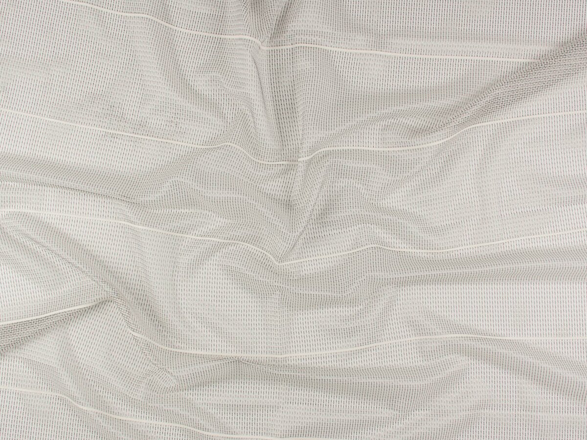 Drive is a leno weave with a metallic appearance that has been embellished with an imitation leather ribbon appliqué.