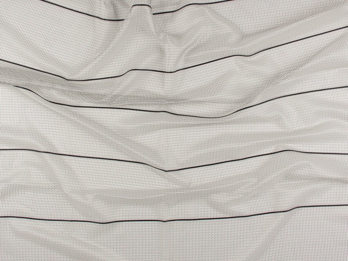 Drive is a leno weave with a metallic appearance that has been embellished with an imitation leather ribbon appliqué.
