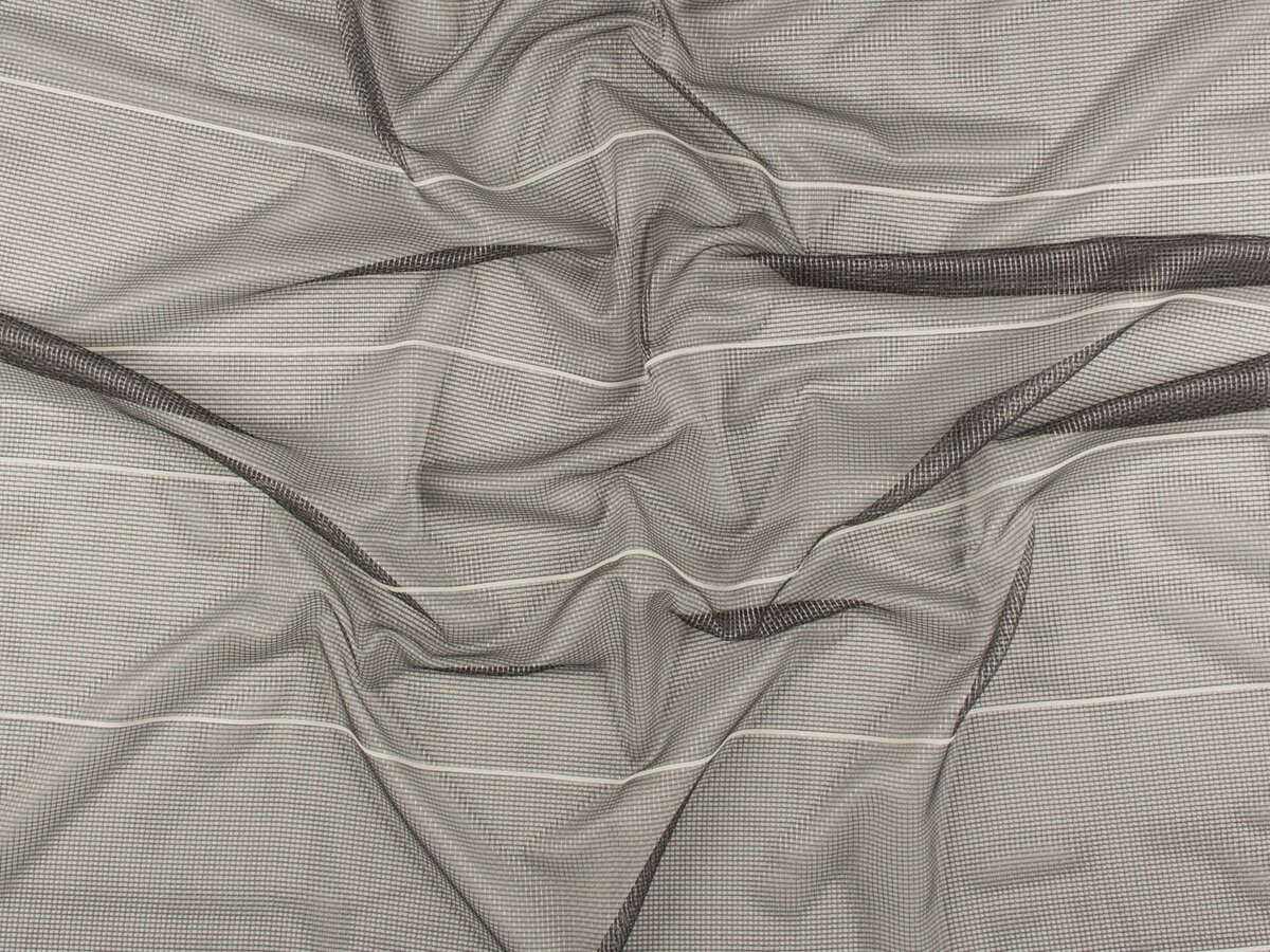 Drive is a leno weave with a metallic appearance that has been embellished with an imitation leather ribbon appliqué.