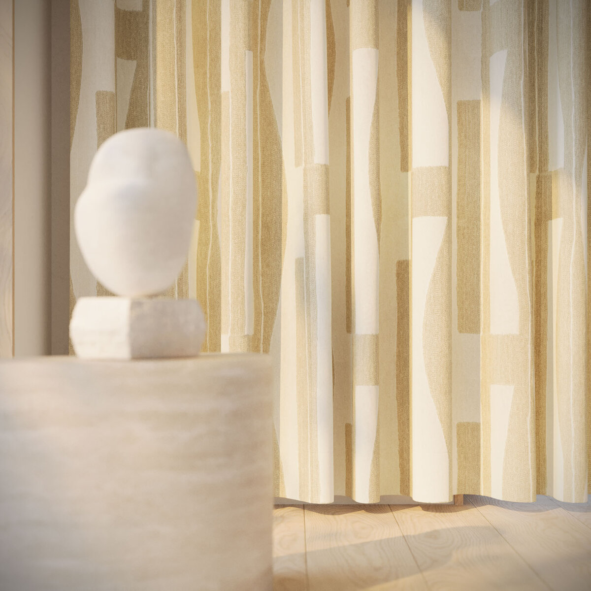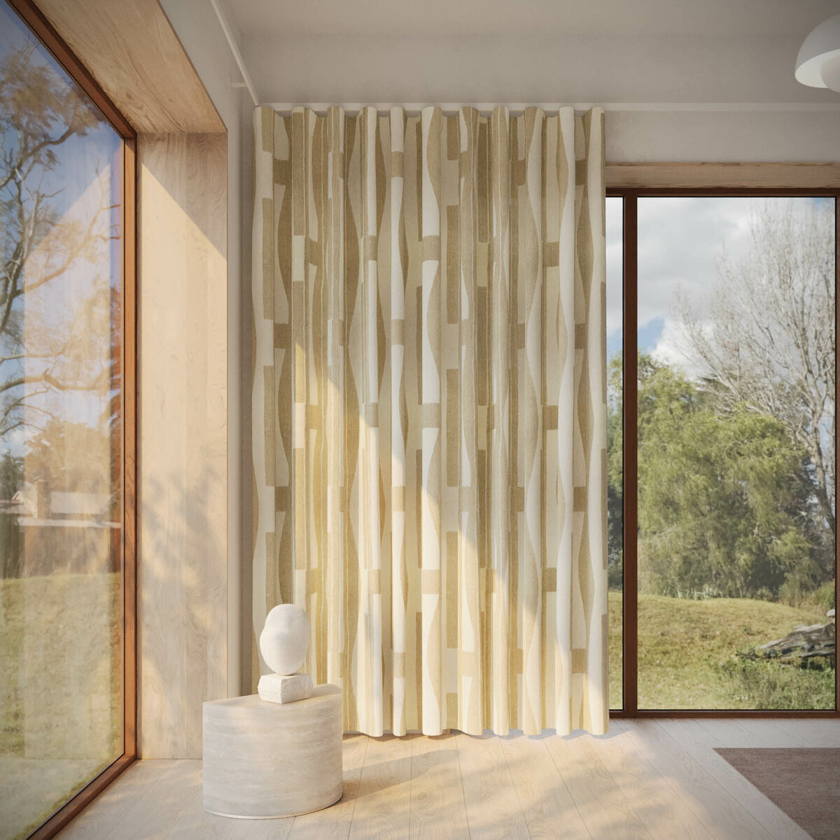 ECHO leaves a lasting impression. Its refined, irregular herringbone and blended yarns create a soft-edged graphic pattern—elegant, contemporary and full of motion. Linen content brings natural charm, while understated colors—from sand to deep blue—add quiet sophistication.