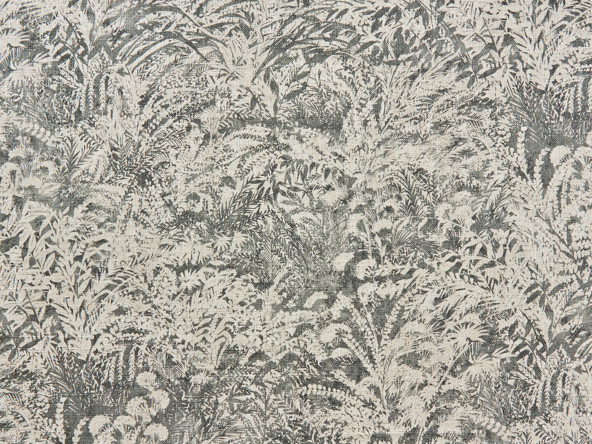 Paradise interpreted as lush foliage that stands vividly in space through a two-colour interplay of background and foreground. The all-over motif was digitally printed with a GOTS-certified reactive ink onto a cotton base produced in the Better Cotton Initiative (BCI) programme, which requires neither pre-treatment nor post-treatment. This innovative technology from our traditional textile printer in the North of England is not only water and energy efficient, but also produces particularly high light fastness and durability results.