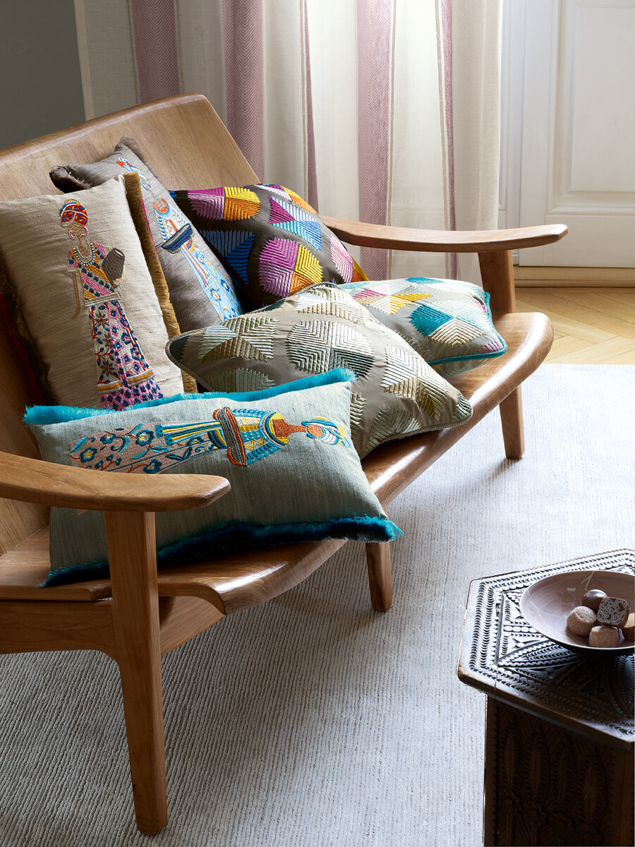 This semi-transparent drapery in a double-width has a decorative vertical stripe design. The two-tone design and the border of the stripes contrast with the single-coloured linen base fabric. This fabric stands out with its web technique and particularly beautiful drape.