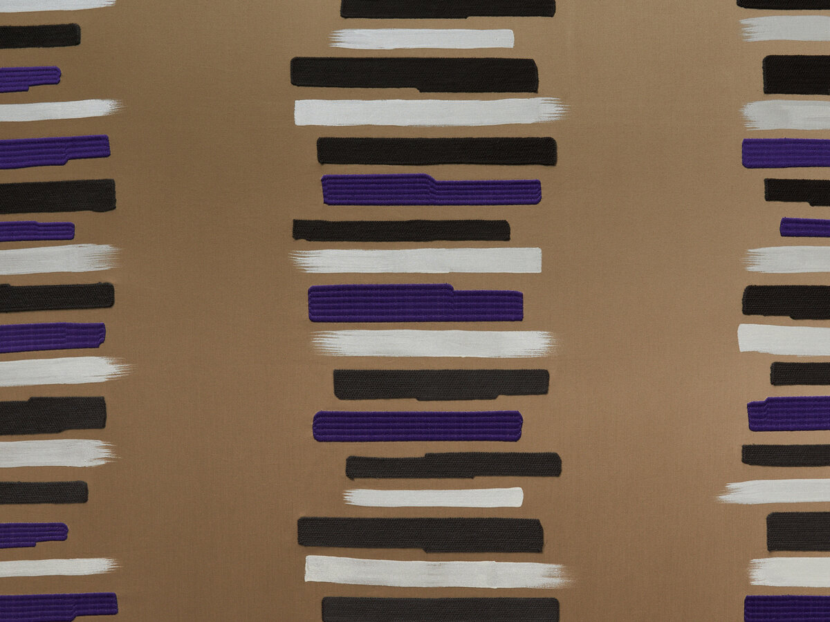 This abstract work of art is inspired by ELDORADO, the legendary golden landscape. The beauty of the special embroidery is enriched by hand-painted brush strokes, which are applied individually with metallic pigments.