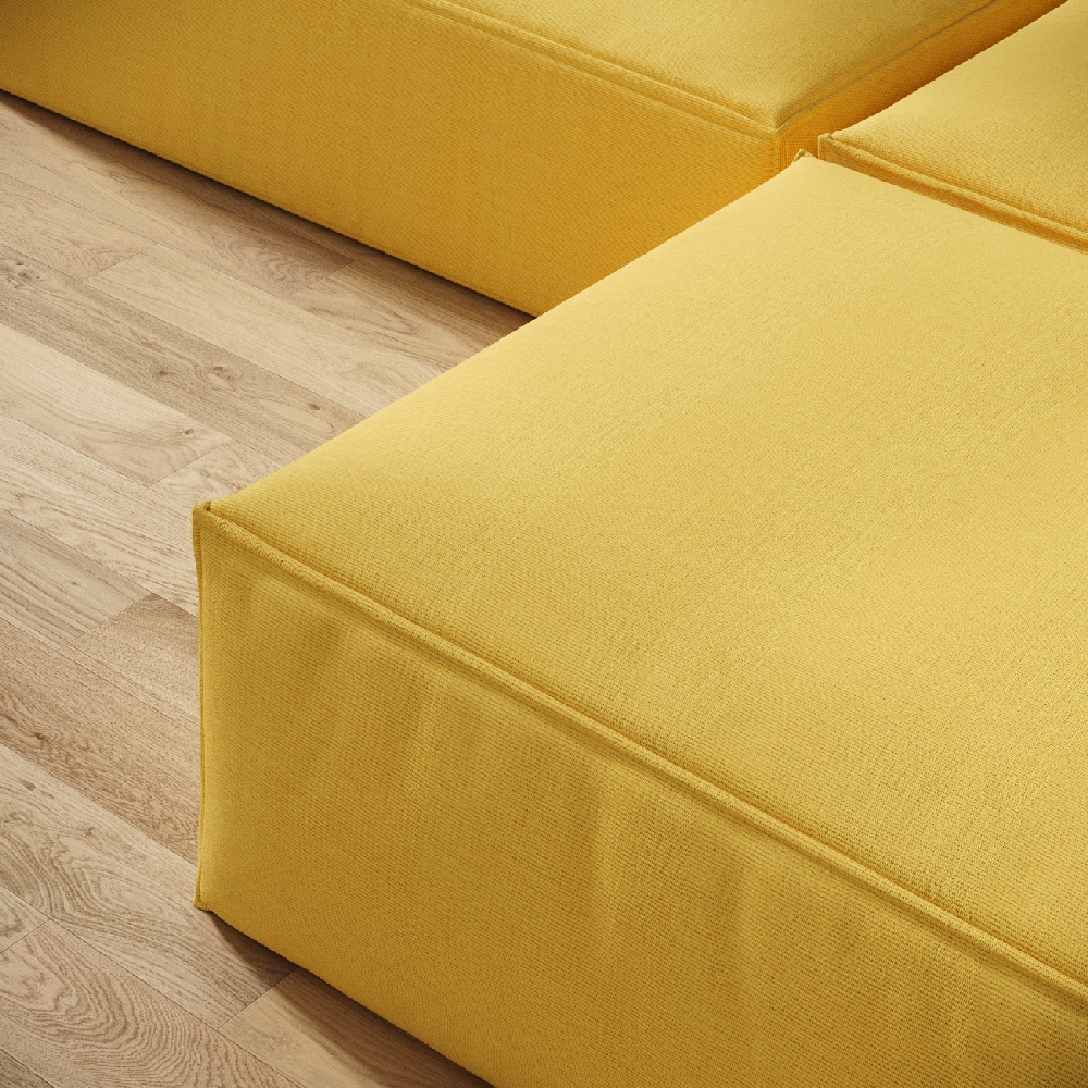 The laid-back upholstery fabric, with its fine chenille texture, boasts a natural look teamed with a rich color palette. The comfortable and hard-wearing structured weave works its magic on larger, softly upholstered pieces of furniture, exuding a cozy, feel-good atmosphere.