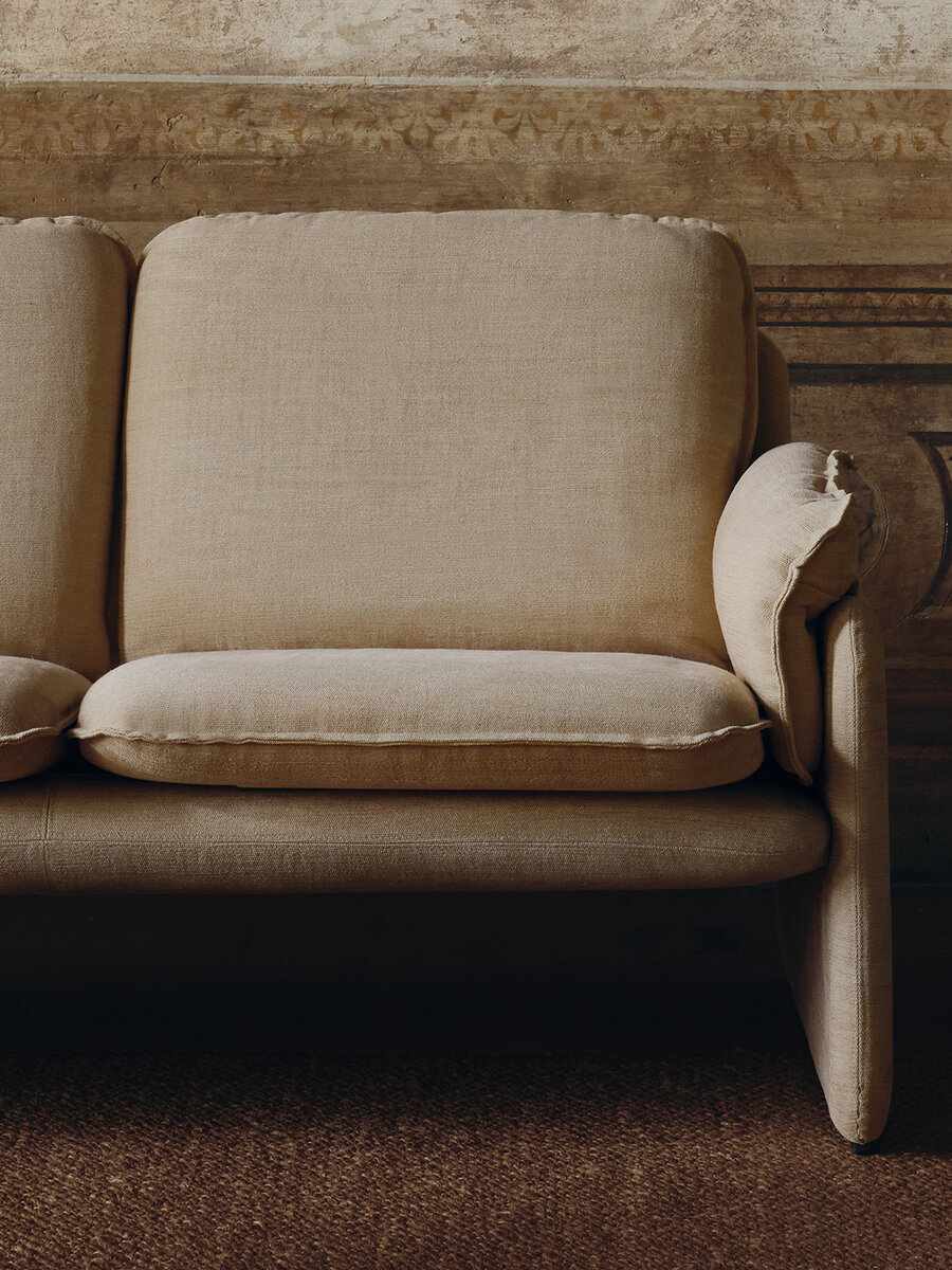 The laid-back upholstery fabric, with its fine chenille texture, boasts a natural look teamed with a rich color palette. The comfortable and hard-wearing structured weave works its magic on larger, softly upholstered pieces of furniture, exuding a cozy, feel-good atmosphere.