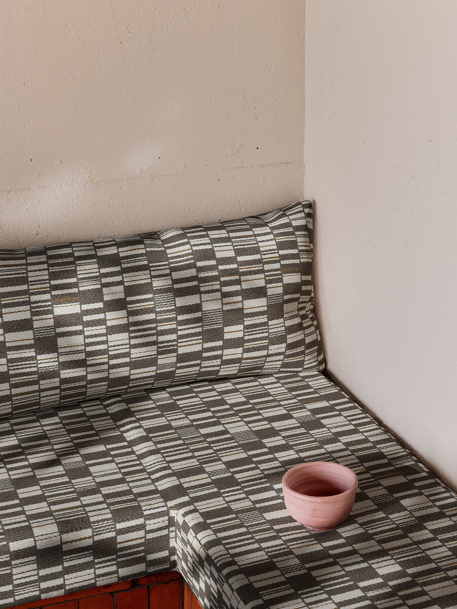 The charm of this geometric jacquard woven fabric, lies in its simple but very expressive composition.