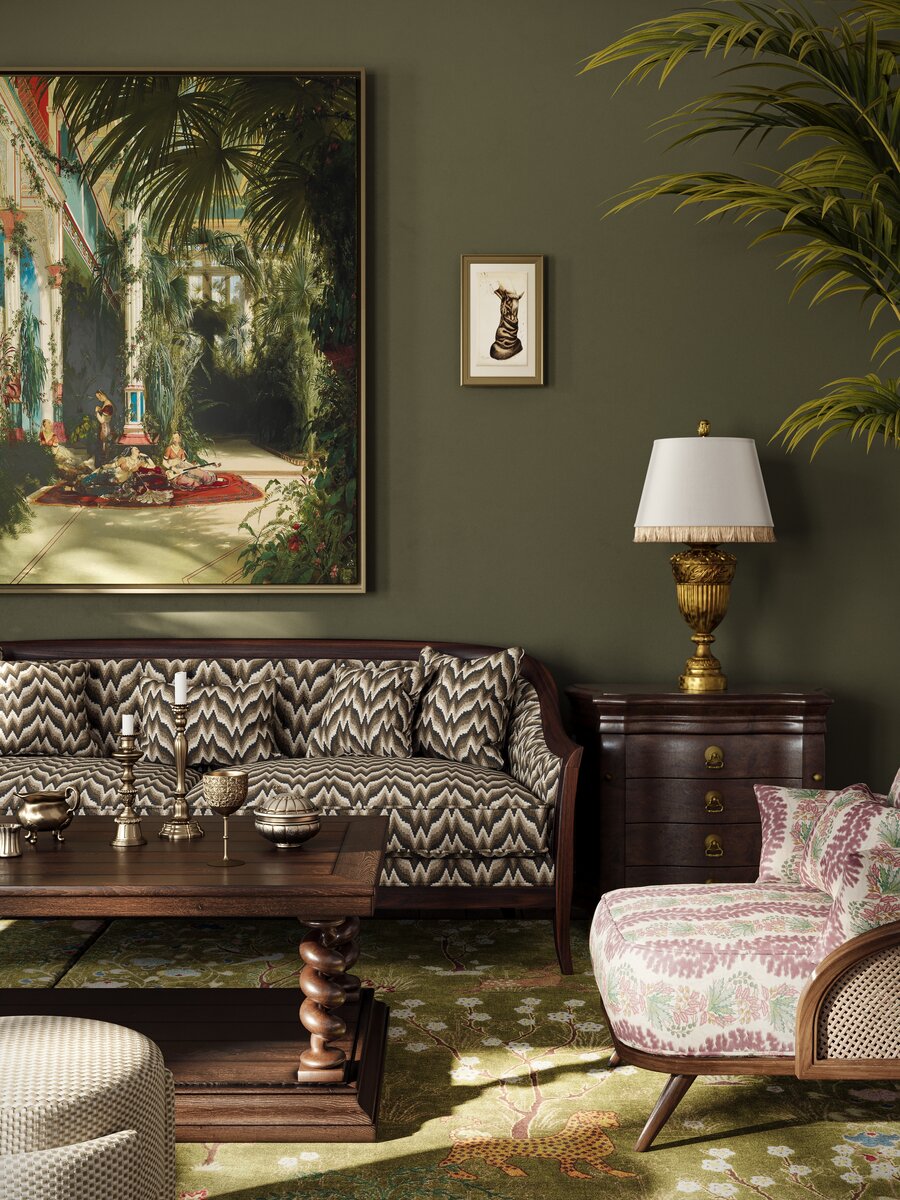 An elegantly crafted upholstery design woven using Gobelin tapestry techniques, Ember Flame is reminiscent of the classic flame stitch upholsteries found invariably in classical homes, chateaus and villas across Europe. Woven in Belgium by highly skilled artisanal weavers, Ember Flame has a delicate movement of color flowing through the design, and a structure that gives the cloth an almost needle-point effect. With a Martindale result of 25,000 rubs, this design is perfect for adding a playful edge to bold interiors.