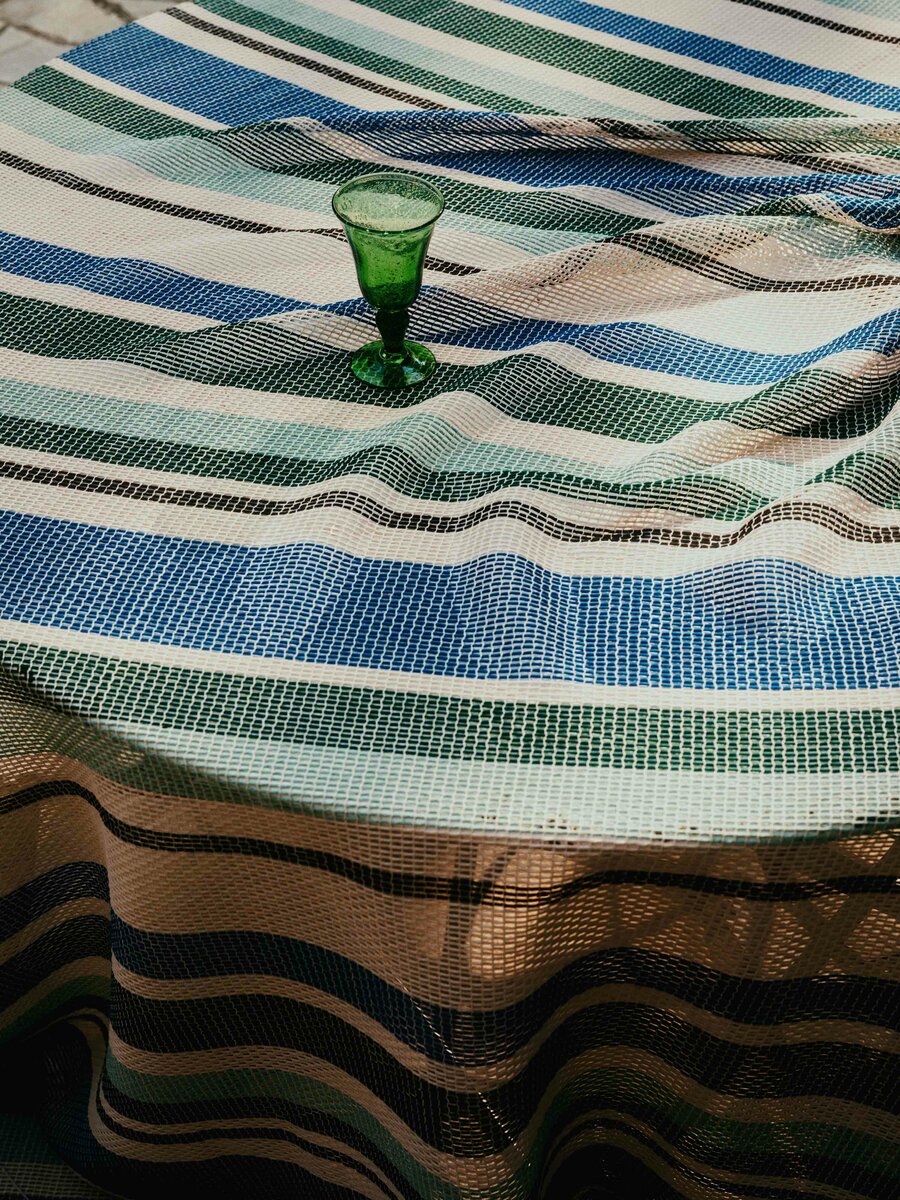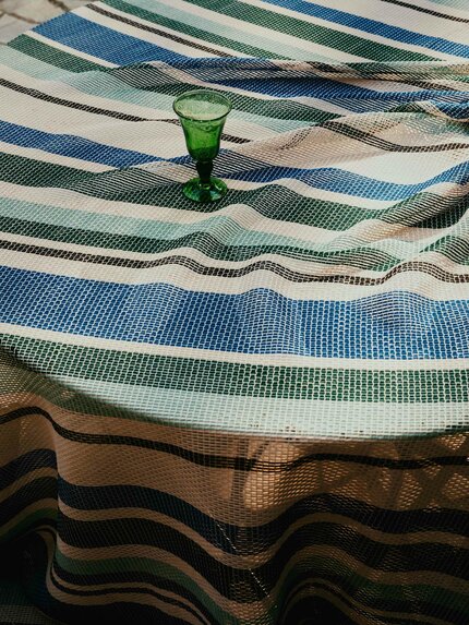 ESCALE, like FIL DU TEMPS, blends airy transparency with a raffia-inspired look. Its crochet-like stripe echoes the chic beach silhouettes of 1950s Saint-Tropez.