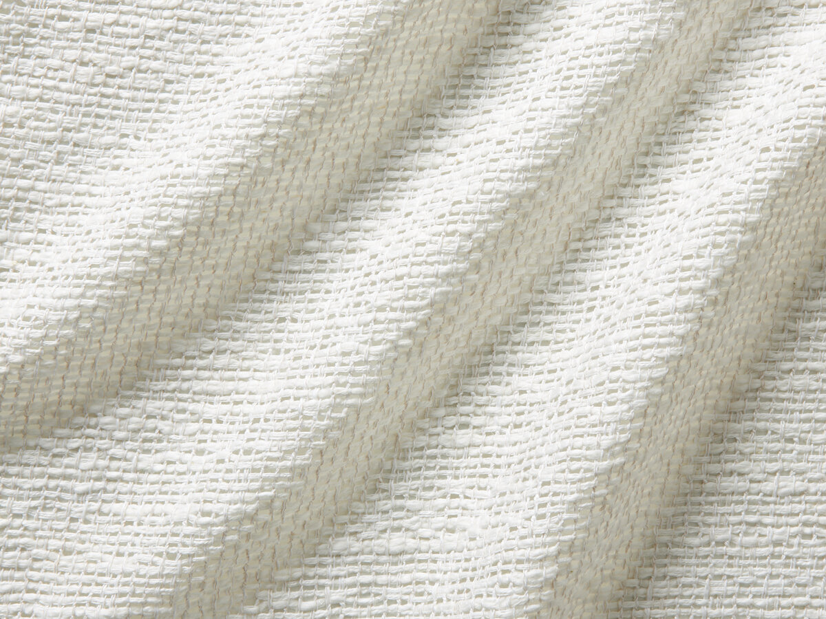 Esprit de vent juggles with different levels of transparency; sometimes light, sometimes raffia-like. Recycled and woven in large widths in English gauze: two warp threads are woven around the weft to produce a solid but crystalline fabric.