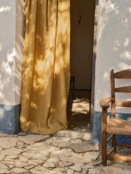 In the weft, a flamed cotton thread adds structure and character; in the warp, the synthetic fibres are made from recycled bottles and give the fabric its robust nature.