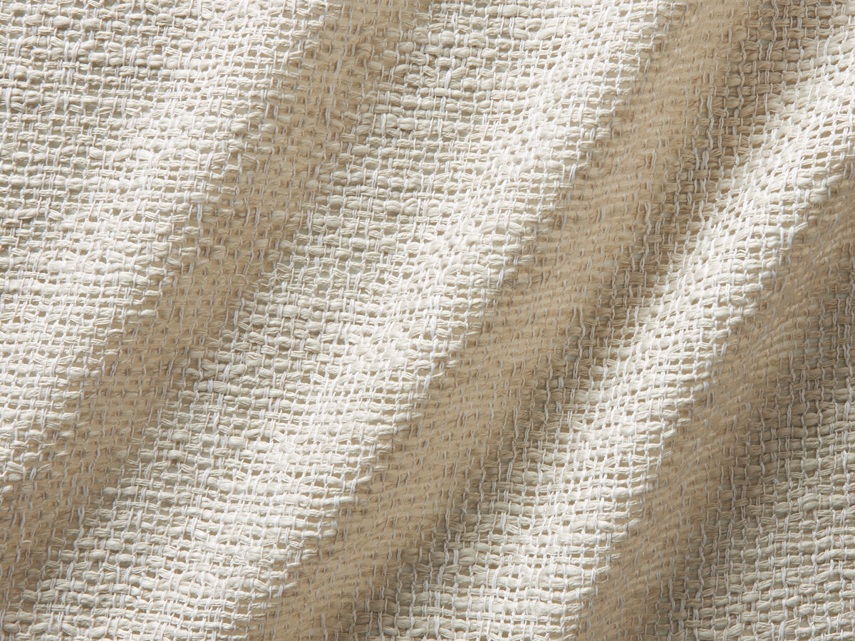 Esprit de vent juggles with different levels of transparency; sometimes light, sometimes raffia-like. Recycled and woven in large widths in English gauze: two warp threads are woven around the weft to produce a solid but crystalline fabric.