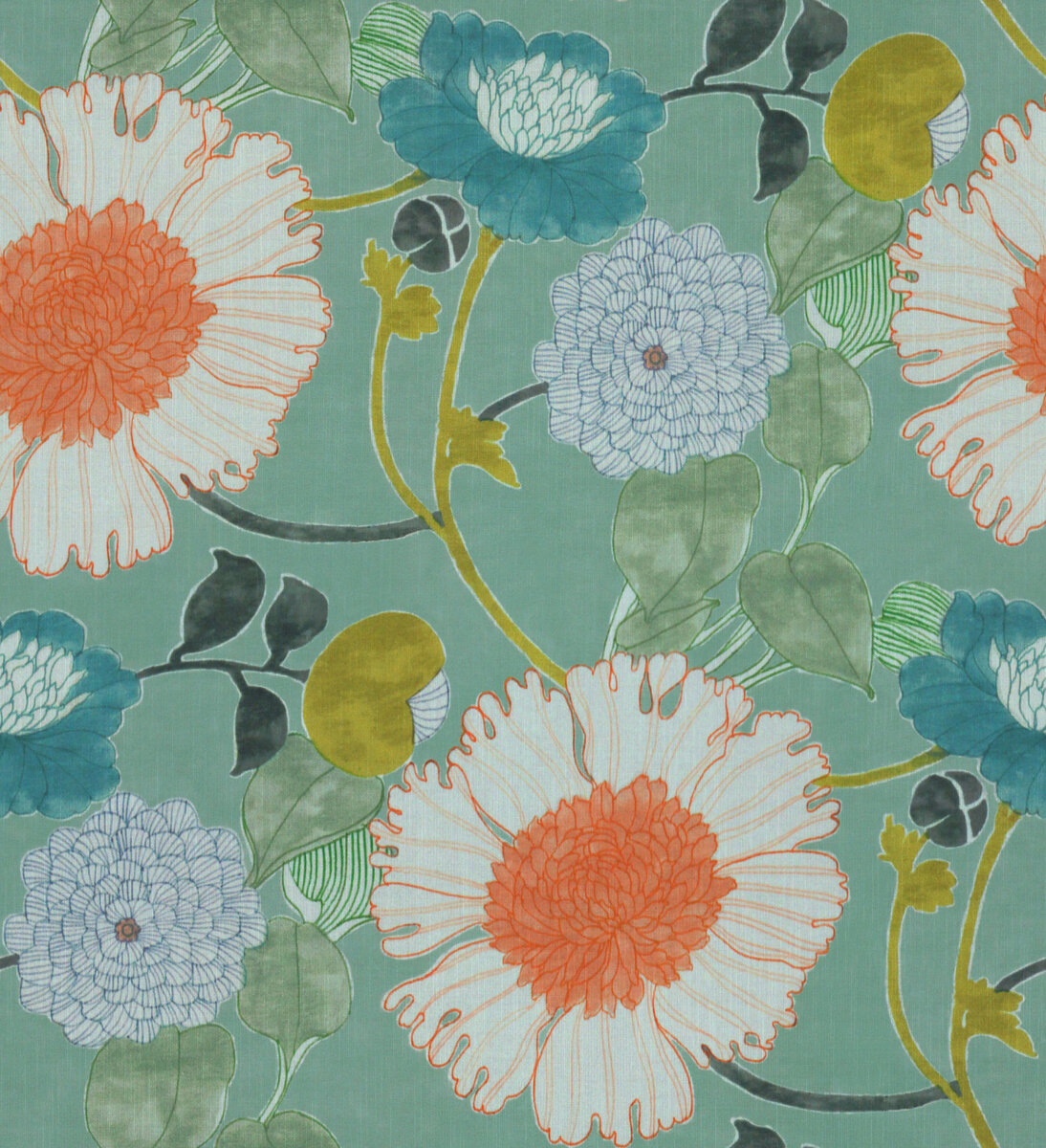FLANEUR – A snapshot of an idyllic garden. Floral design and fresh colours invite you to take a stroll within your own four walls. Enjoy this modern ambience in floral aqua/lobster against a striking dark petrol background, orange/blue against a fascinating sage green, turquois/terracotta against an elegant silver-grey or green/yellow against a pure white background.